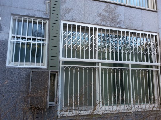 고정 방범창은 답답한 면이 있지만 자바라 슬라이딩은 옆으로 열수있다는 장점