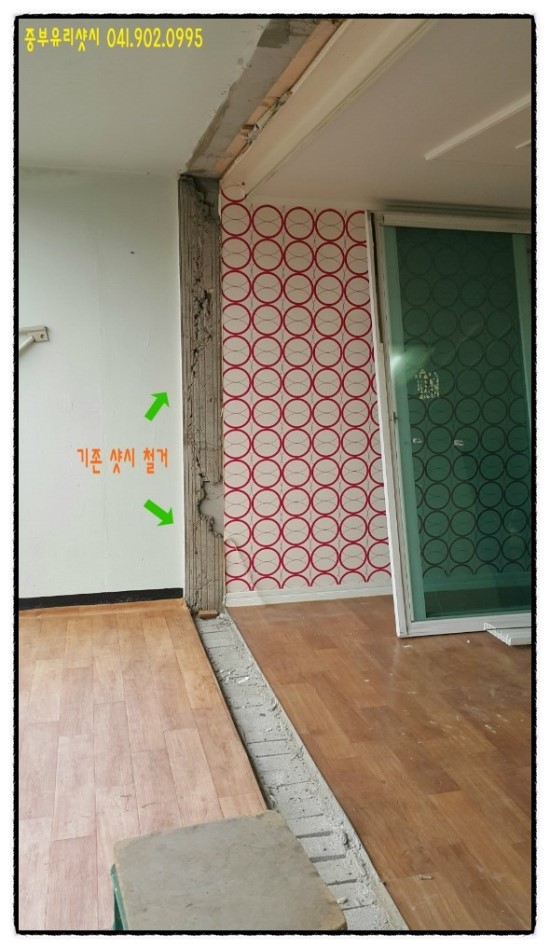 기존샷시 철거, 다른곳에 손상이 가지 않도록 조심하게 철거합니다