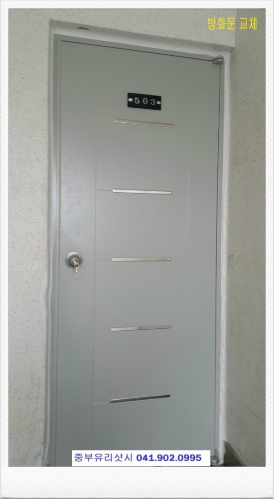 입구 방화문도 이렇게 깔끔하게 작업되었습니다 .
