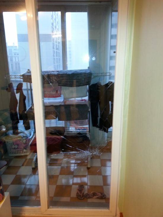 이런 빨래건조대를 옮기다가 그만... 넘 위험하게 깨져있죠.  바쁜나머지 시공사진을 그만 ㅠㅠ
