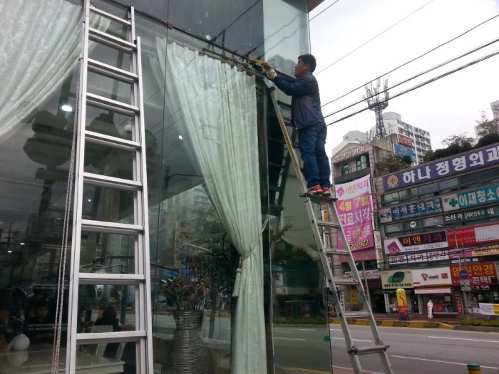 마무리 작업이 중요하죠. 물이 세거나 유리가 빠지지 않게 실리콘 코킹작업으로 유리공사는 끝