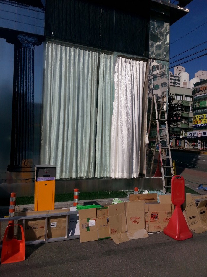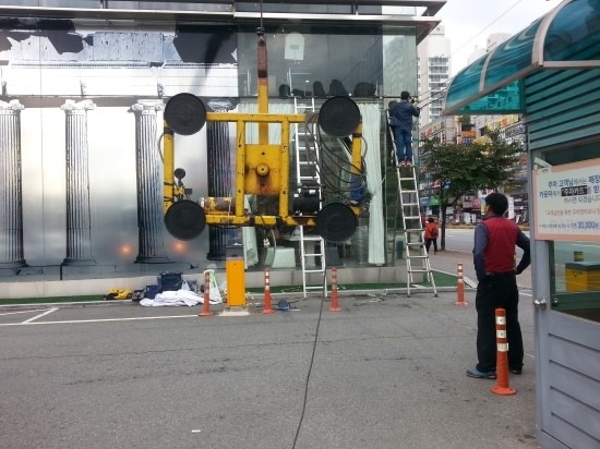 대형유리가 이렇게 파손되어 있더군요. 유리철거 작업시작