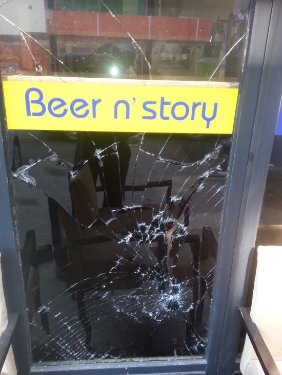유리가 파손 되었다는 전화에 현장으로 출발