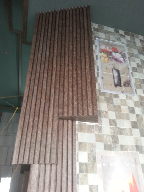 목공작업 골이패인 자리에 거울을 시공합니다.
