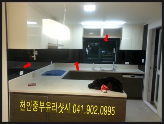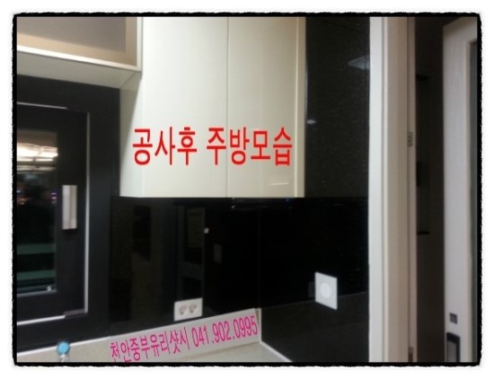 이제 KS대한 주방칼라유리 검정펄 유리를 시공합니다.