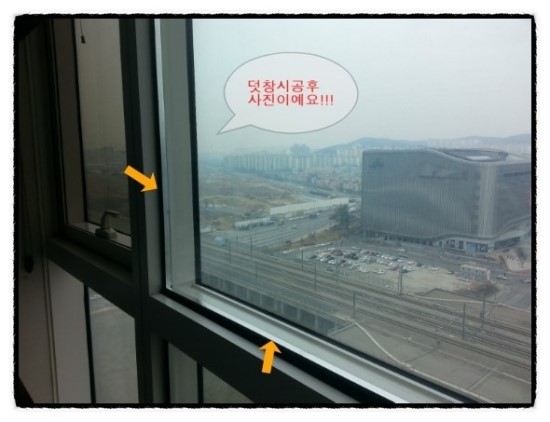 안쪽에 유리시공 사진입니다. 공기층을 많이 줄수록 단열 효과가 있습니다.