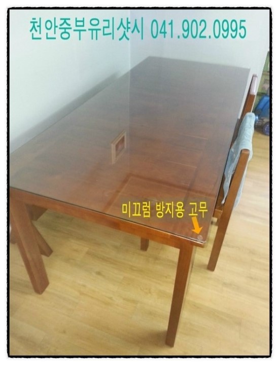 원목 식탁은 유리 밑 미끄럼방지 고무는 필수겠죠.