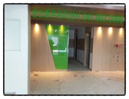 천안지역 회사 인테리어 칼라유리 시공사진