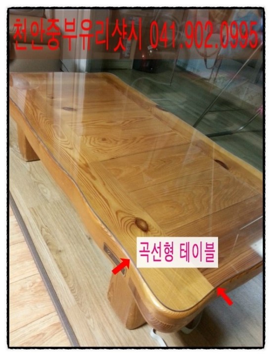 곡선이 많이 들어가있는 괴목형 테이블 입니다. 전문가 답게 직접 유리를 작업합니다.
