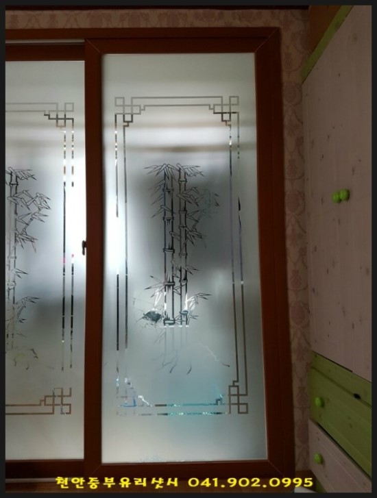 대나무 에칭입니다.유리를 철거해 바로 작업해 설치합니다.
