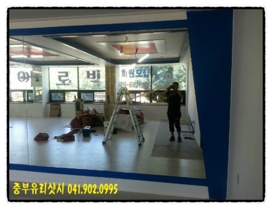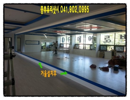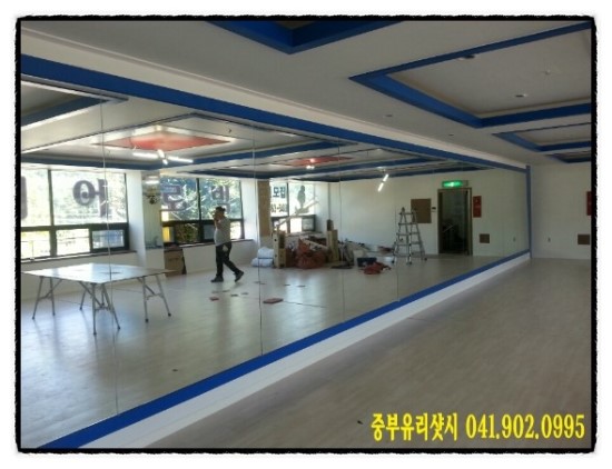 천안전신거울 에어로빅 체육관 목공작업후 보오미거울 설치입니다.