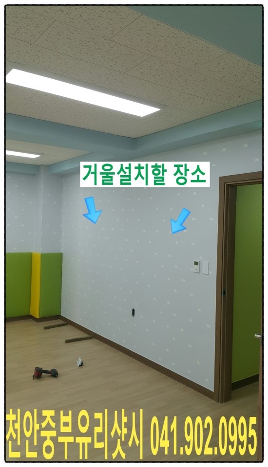 아산 어린이집 전신거울 설치사진 입니다.