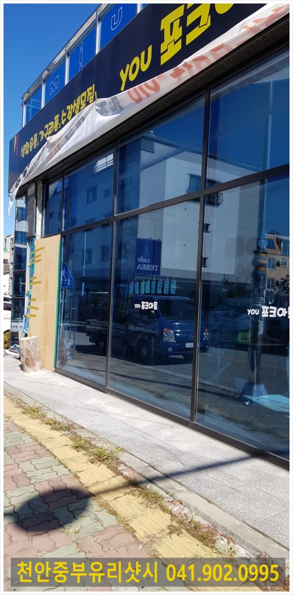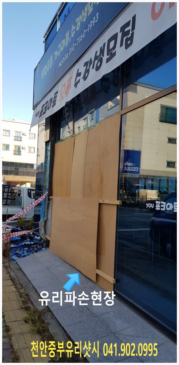 천안중부유리샷시 입니다. 천안.신방동 상가파손 교체현장입니다.