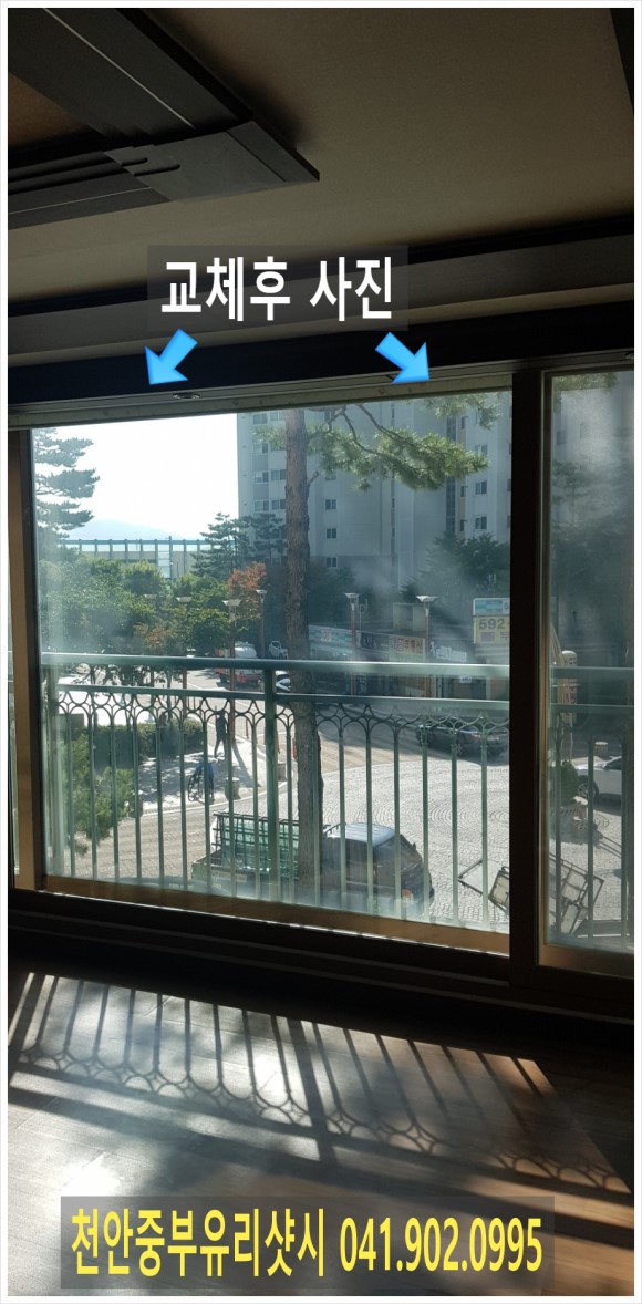 천안 청수동 아파트 베란다유리 파손교체 내용입니다.